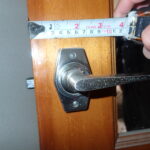使う道具はプラスドライバー1本取り外したラッチを持ってホームセンターで同じモノ(バックセット、フロントのサイズ、角穴サイズ)の用意ができれば取り付けて完了です。