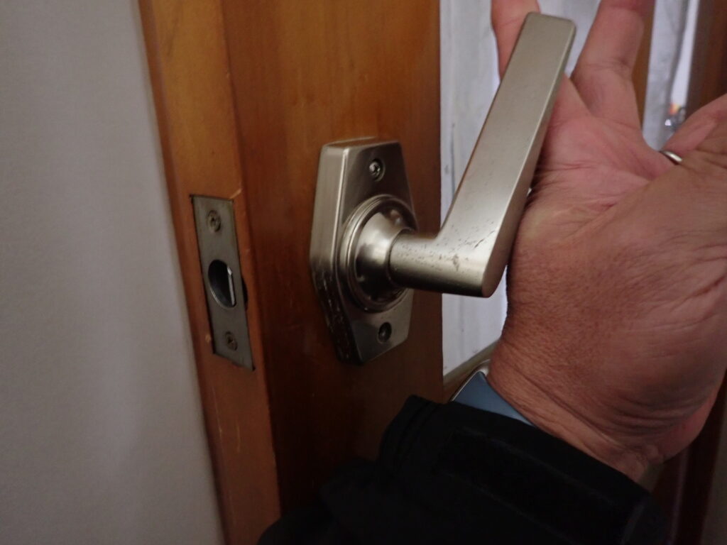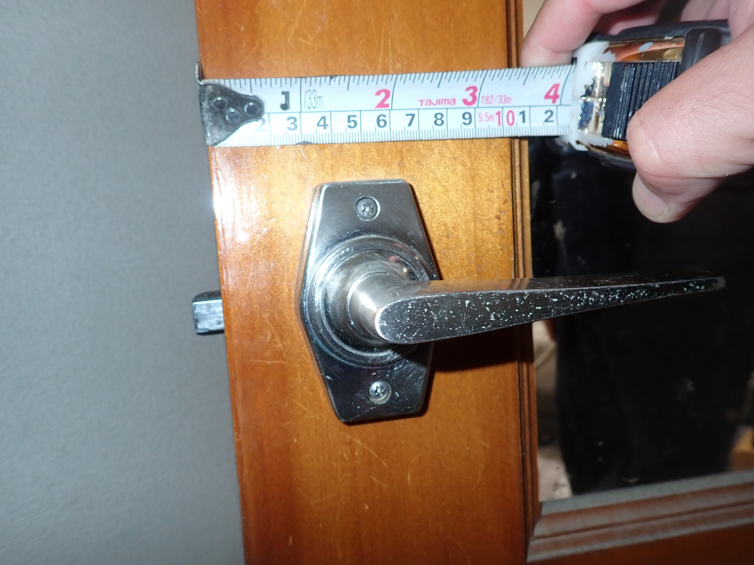 使う道具はプラスドライバー1本取り外したラッチを持ってホームセンターで同じモノ(バックセット、フロントのサイズ、角穴サイズ)の用意ができれば取り付けて完了です。