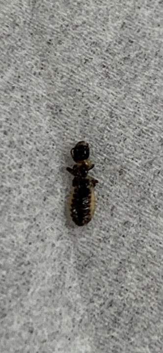 胴体部分をティッシュで包んで持ち帰り、虫眼鏡で見てみたら、やはりシロアリと特徴が一致していました。